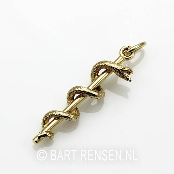 Size of the golden Rod of Asclepius pendant is 28 x 8 mm (including pendant eye 31 x 8 mm).