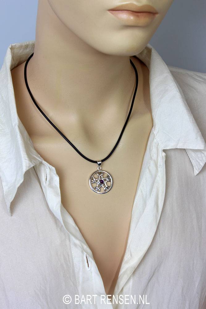 For Pythagoras the pentagram was a sacred symbol for physical-mental harmony and therefore a sign of healing and health. It is best known as a magic sign to ward off and protection against negative forces, ghosts and demons. With the point upwards white, down to black magic. Because the lines divide each other in the Golden Mean ratio, the silver pentagram pendant pointing also to the forces and forms in nature.