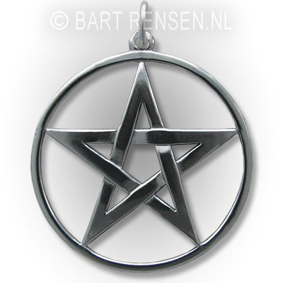 The pentagram, pentacle, druid foot or five-pointed star has been in all ages been the symbol of the reborn man, the new man. If we follow the lines of the pentagram, starting from the upper point (1) left-down (2), creates a continuous movement of development that shows how it goes. The I (1) descends into matter, being born (2). It follows growing up in the world (3), which one of consciousness (4) can be. By pressing a conscious manner to deal with the earthly (5) will be released from the dust and return to the origin (1). It is also the symbol of the universe and its eternal becoming, which is God's plan of revelation. A symbol of man as a link between macro-and micro-cosmos. For Pythagoras, the pentagram was a sacred symbol of physical and mental harmony therefore a sign of healing and health. It is primarily known as a magic sign to ward off and protect against negative forces, ghosts and demons. With the tip up to white, down to black magic. It also points to the forces and forms in nature, because the lines dividing each of the Golden Section ratio.