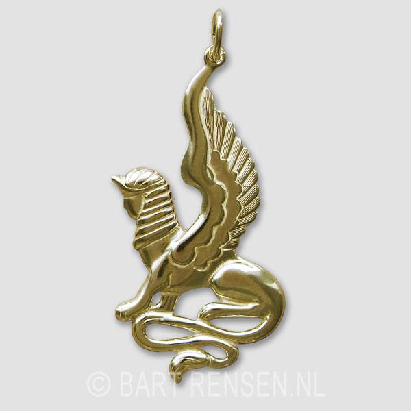 The Greek sphinx is female, has breasts and curled wings. They are used, for instance tomb guardian and protector.