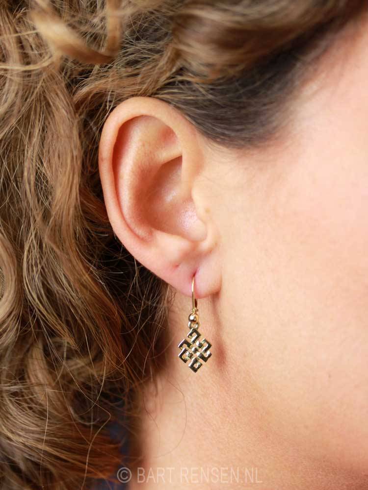 The size of the golden Tibetan Knot earrings are 13 x 10 mm (including luxury earhook 29 x 10 mm)
