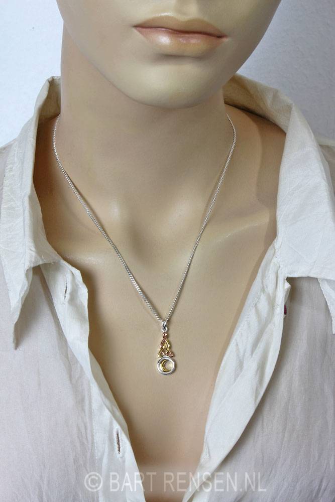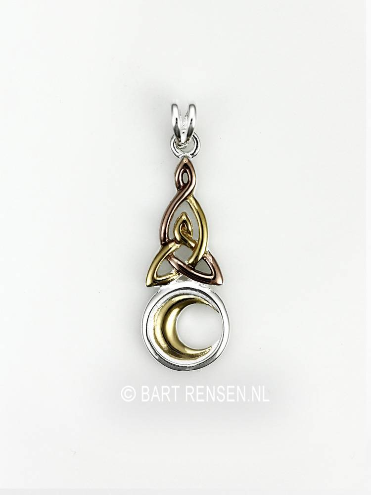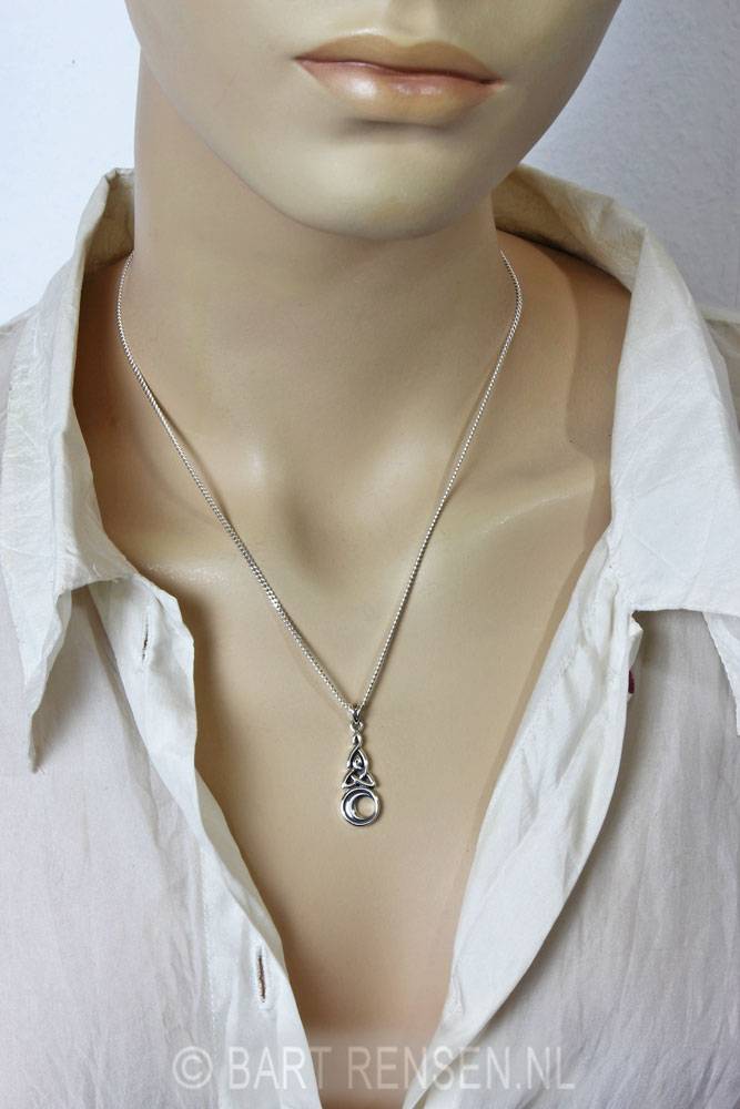The size of the Triquetra pendant with Moon is 24 x 10 mm (including pendant eye 34 x 10 mm).