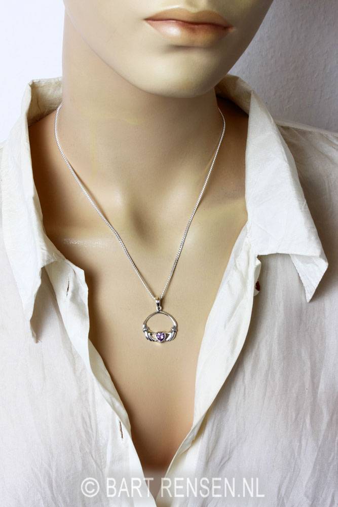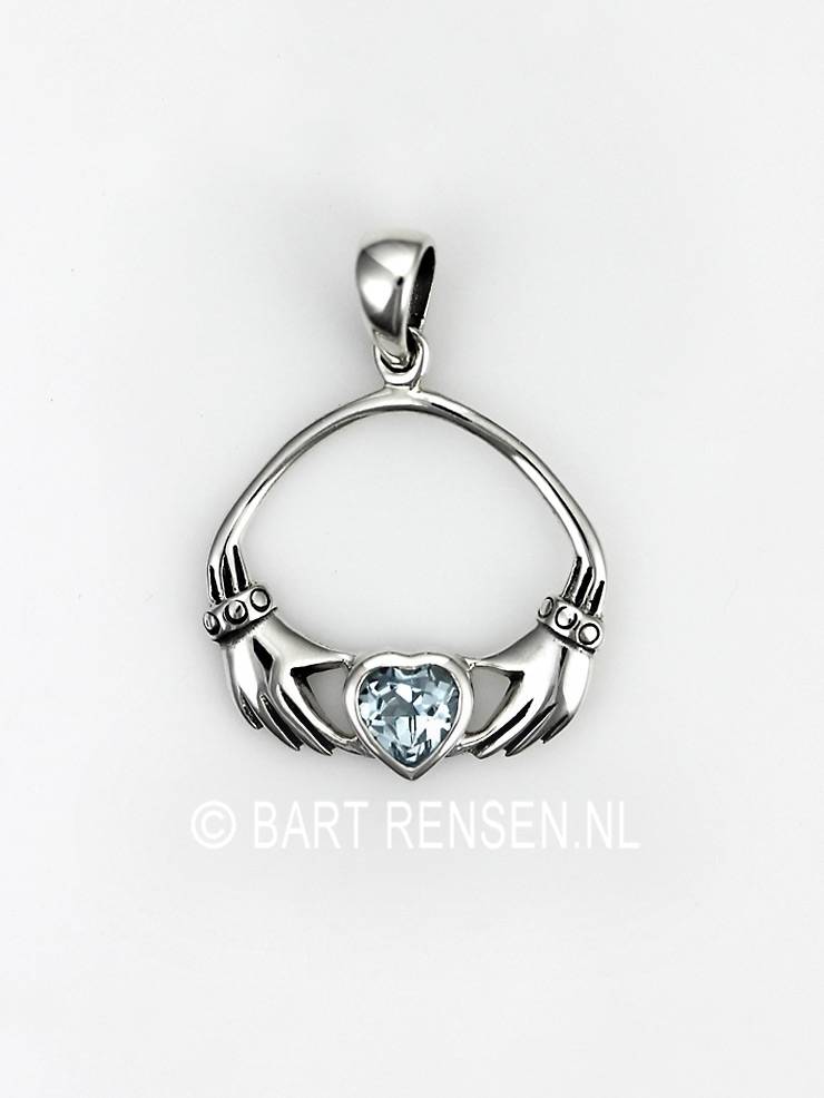De afmeting van de Claddagh hanger met steen is 19 x 21 mm (incl. hangeroog 28 x 21 mm).