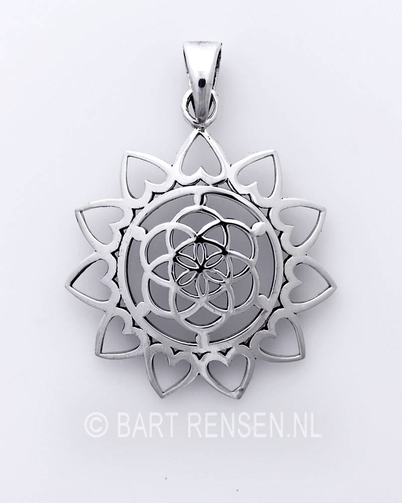 De afmeting van de Seed of Life Lotus hanger is 30 x 30 mm (incl. hangeroog 39 x 30 mm).