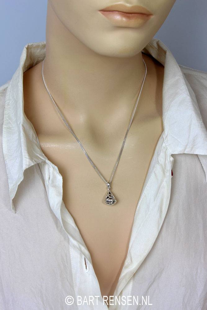 De afmeting van de Triquetra kegel hanger is 15 x 12 mm (incl. hangeroog 24 x 12 mm).