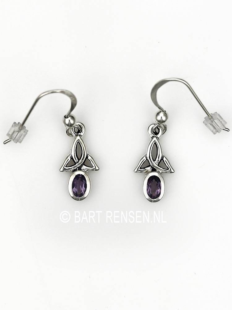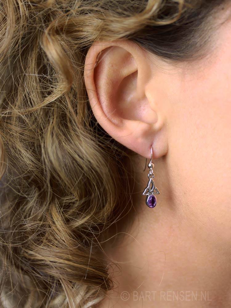 De Triquetra oorhangers met steen worden met verschillende edelstenen geleverd.
