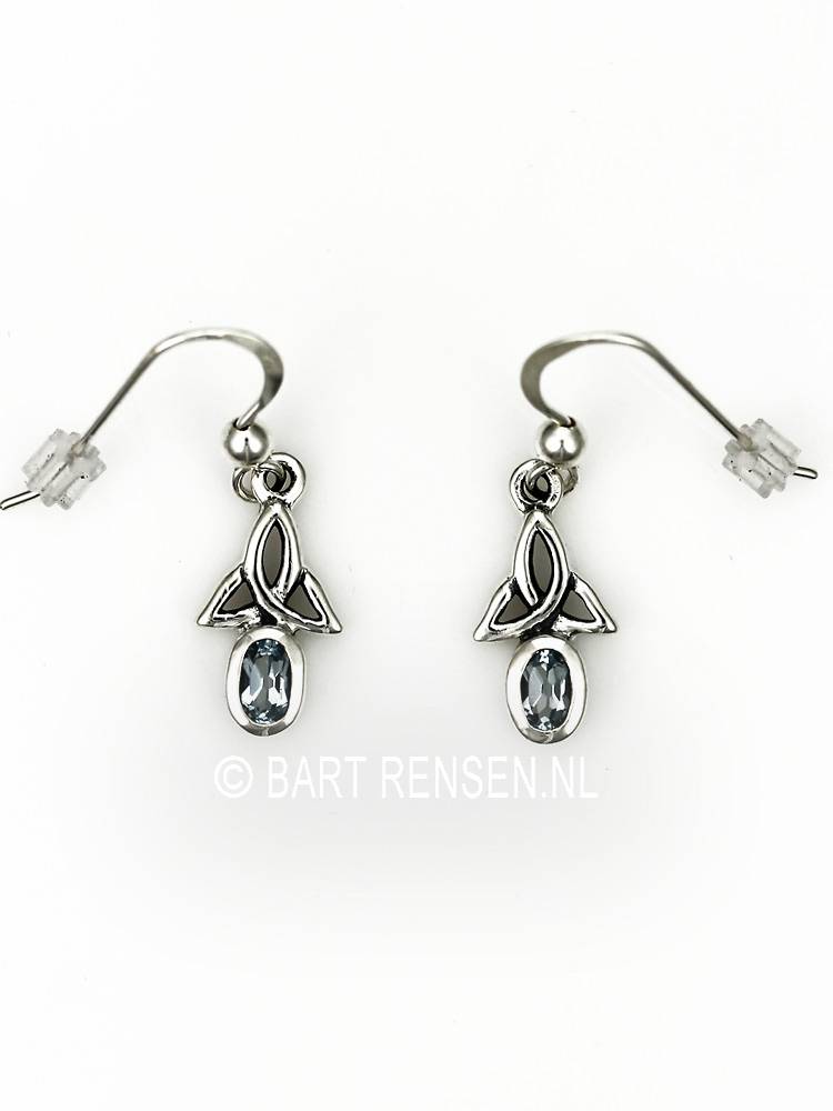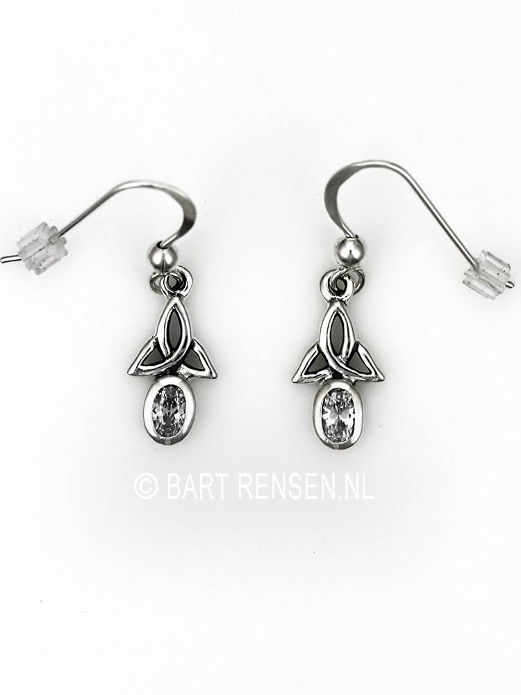 De afmeting van de Triquetra oorhangers met steen is 24 x 28 mm (incl. hangeroog 33 x 28 mm).