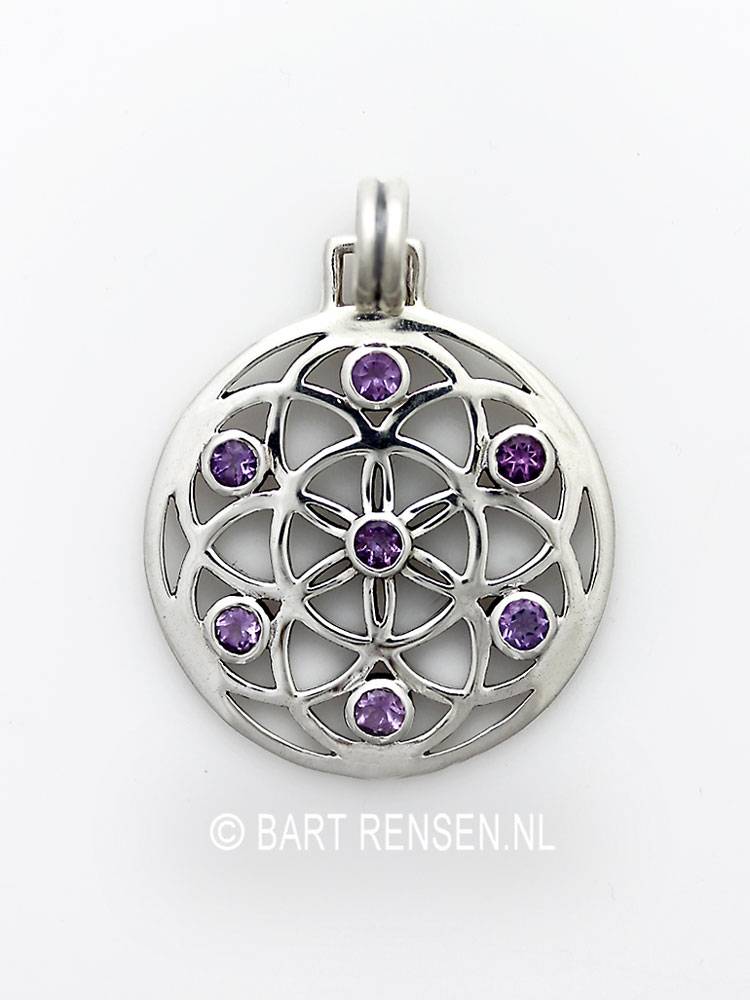 Wat een prachtig sieraad! Ik was er al helemaal verliefd op toen ik de afbeelding op de site zag. Met een korte ketting staat het heel mooi op de huid. Maar kan ook goed aan een wat langere ketting op de kleding gedragen worden. Het is een fraai ontwerp. En de 7 Amethyst steentjes maken het tot een schitterend juweel. Ik ben er heel blij mee en zal het met veel plezier dragen.