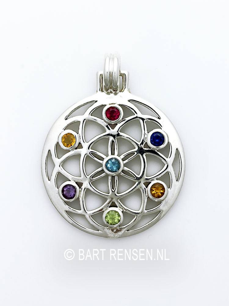 De afmeting van de zilveren Seed of Life hanger is 28 x 28 mm (incl. hangeroog 36 x 28 mm).