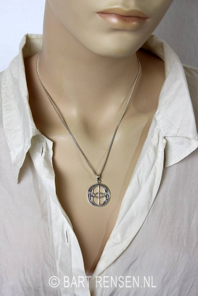 De afmeting van de zilveren Vesica Pisces hanger is 24 x 24 mm (incl. hangeroog 33 x 24 mm).